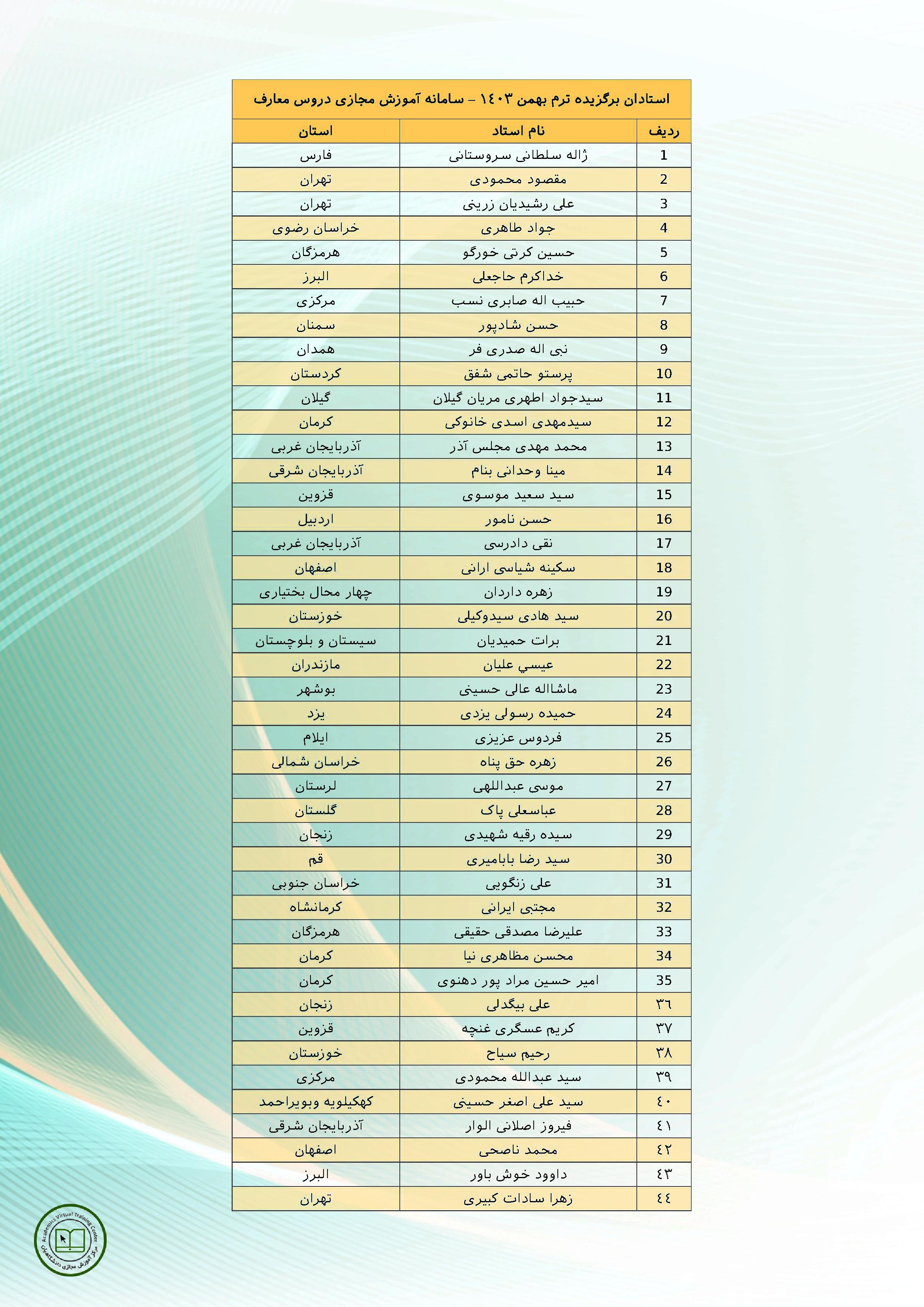 لیست کامل اساتید برگزیده: